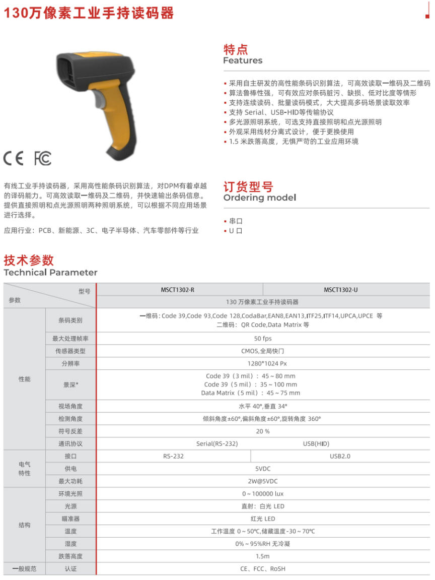 ARC MSCT1302系列有線工業(yè)手持讀碼器