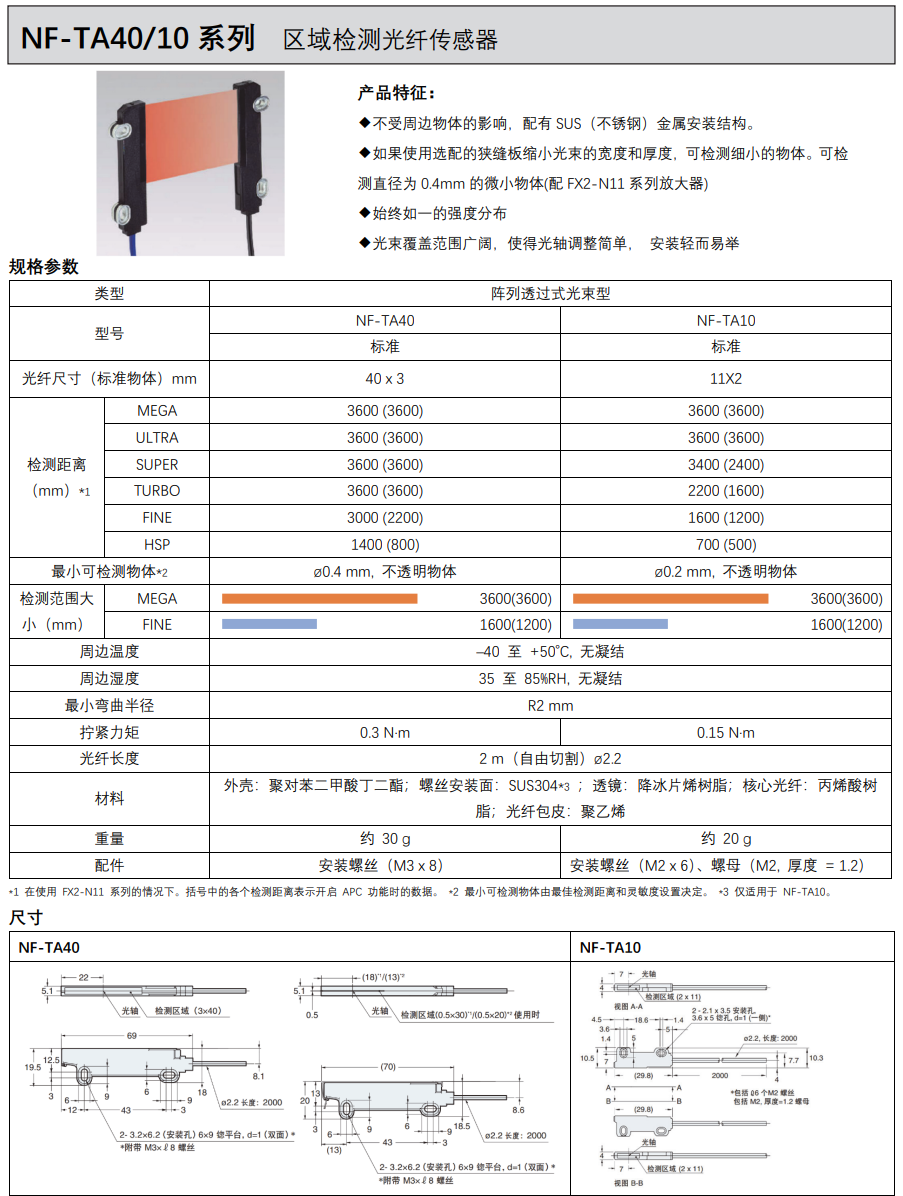 ARC NF-TA40 NF-TA10系列區域檢測光纖傳感器