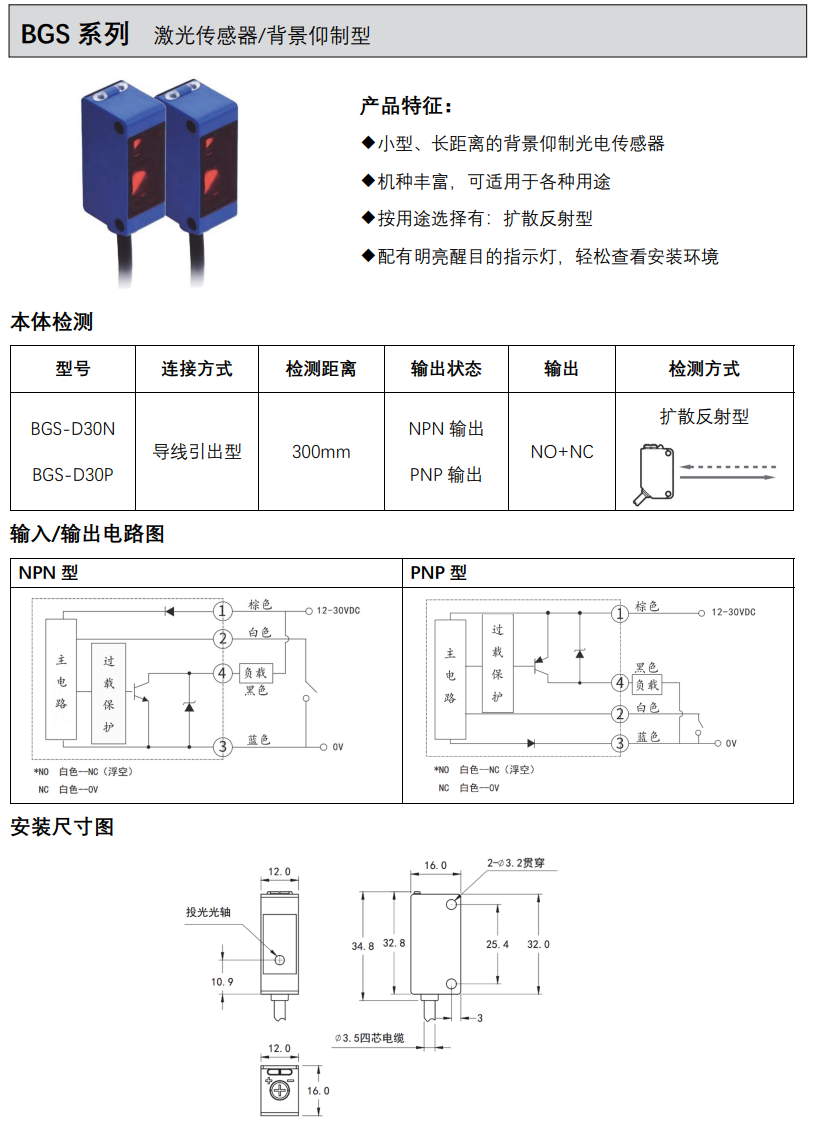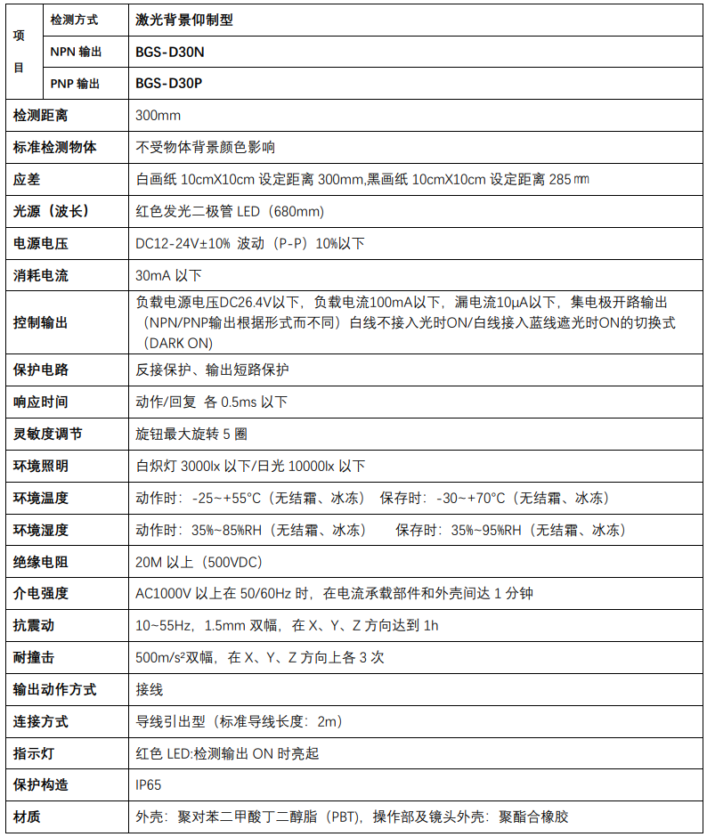 BGS-D30N BGS-D30P 激光傳感器/背景仰制型