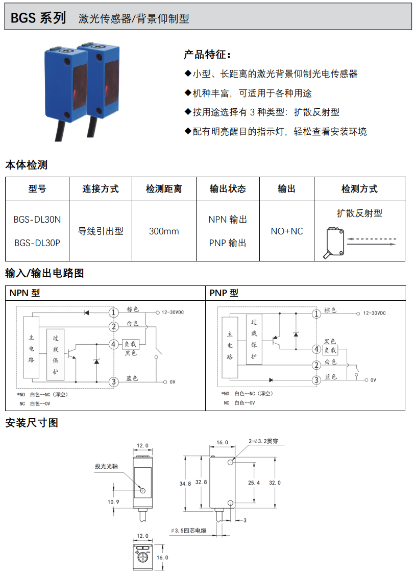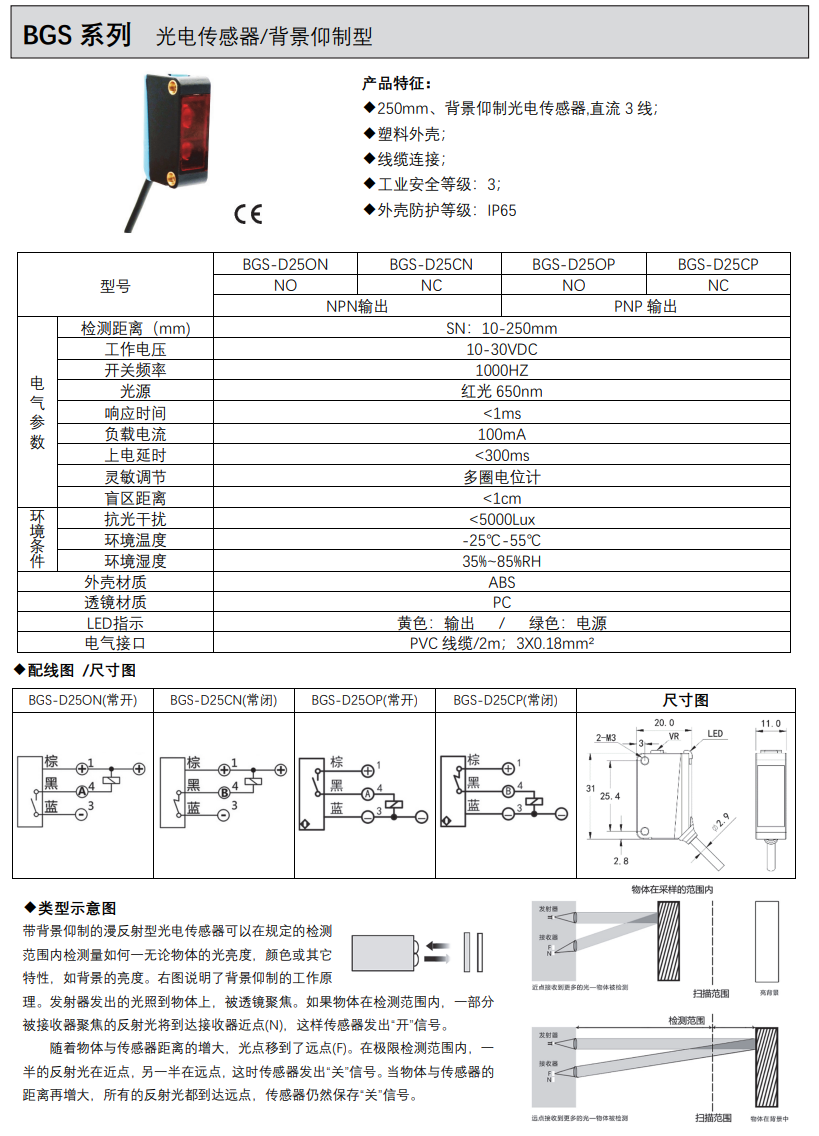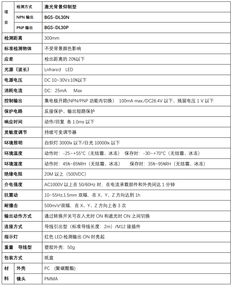 BGS-D25ON BGS-D25CN BGS-D25OP BGS-D25CP激光傳感器